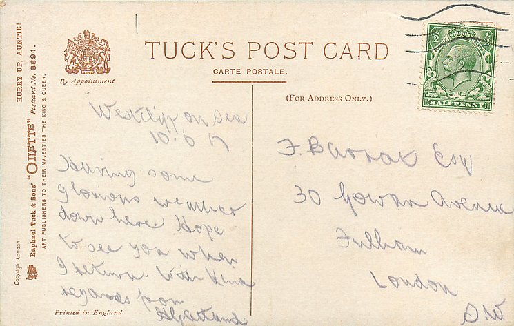 OILETTE, PRINTED IN ENGLAND, listed in 1930 POSTCARD catalogue,