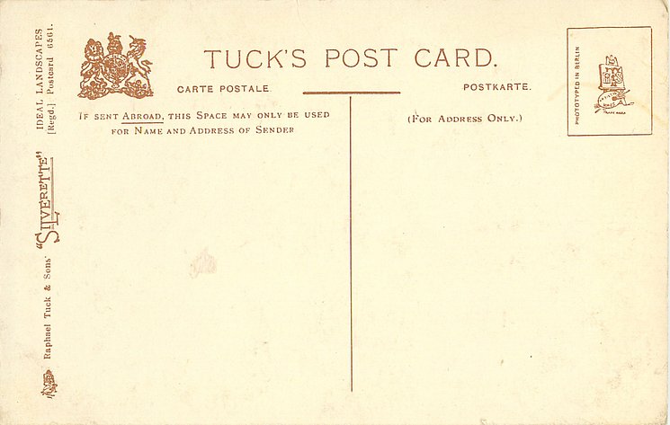 shades of grey/black, SILVERETTE, PHOTOTYPED IN BERLIN (in stamp box). listed in1930 POSTCARD Catalogue