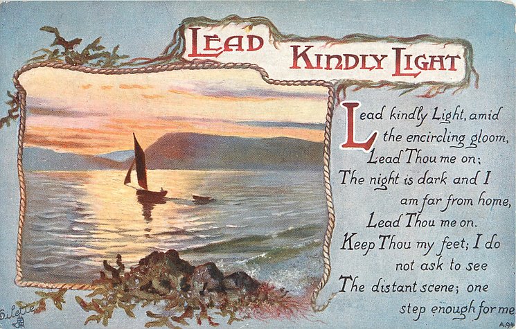 verse:- LEAD KINDLY LIGHT, AMID THE ENCIRCLING GLOOM, LEAD THOU ME ON; THE NIGHT IS DARK, AND I AM FAR FROM//FOR ME.