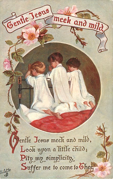verse:- GENTLE JESUS MEEK AND MILD, LOOK UPON A LITTLE CHILD; PITY MY SIMPLICITY, SUFFER ME TO COME TO THEE.