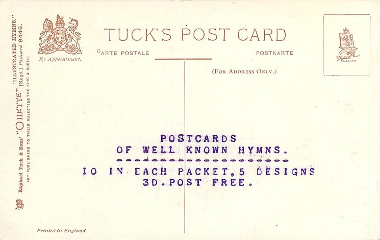 verse:- WHEN I SURVEY THE WONDROUS CROSS ON WHICH THE PRINCE OF GLORY DIED, MY RICHEST GAIN I COUNT BUT LOSS, AND POUR CONTEMPT ON ALL MY PRIDE. quote ISAAC WATTS, same image REAL PHOTOGRAPH ILLUSTRATED HYMNS unnumbered