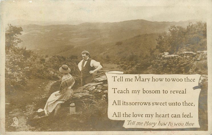 verse:- TELL ME MARY HOW TO WOO THEE TEACH MY BOSOM TO REVEAL ALL ITS SORROWS SWEET UNTO THEE, ALL THE LOVE MY HEART CAN FEEL.