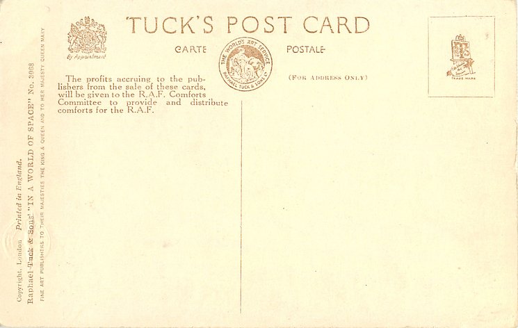 OILETTE, PRINTED IN ENGLAND, COPYRIGHT LONDON, embossed with RAF COMFORTS COMMITTEE logo, COPYRIGHT "FLIGHT", 2 backs