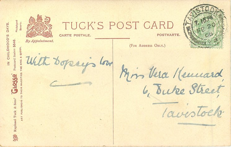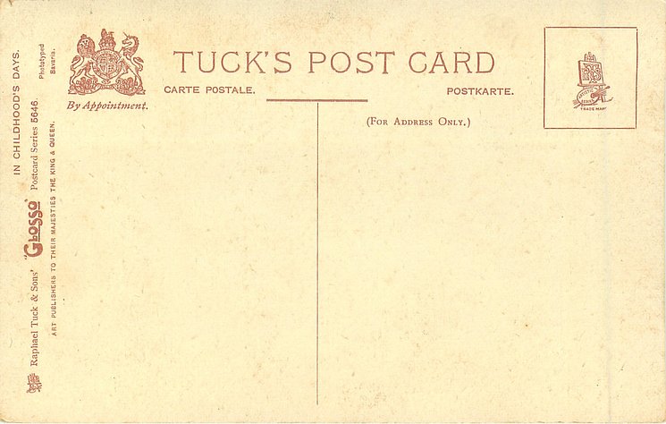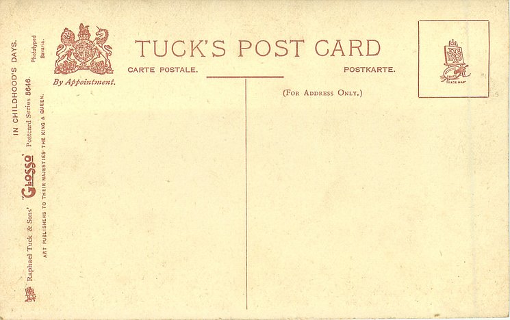 u/b, sepia, PHOTOGRAVURE, PRINTED IN BAVARIA, listed in 1904 POSTCARD Catalogue