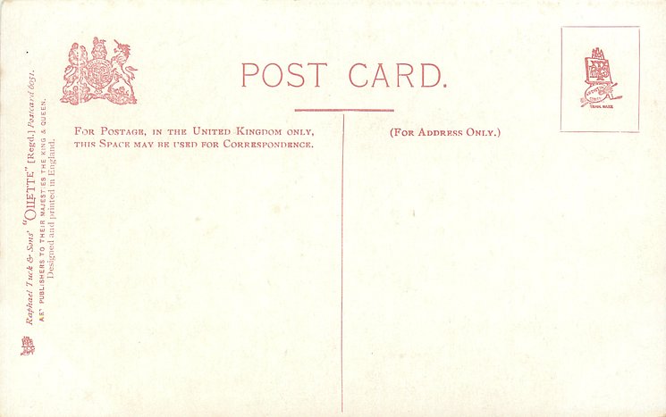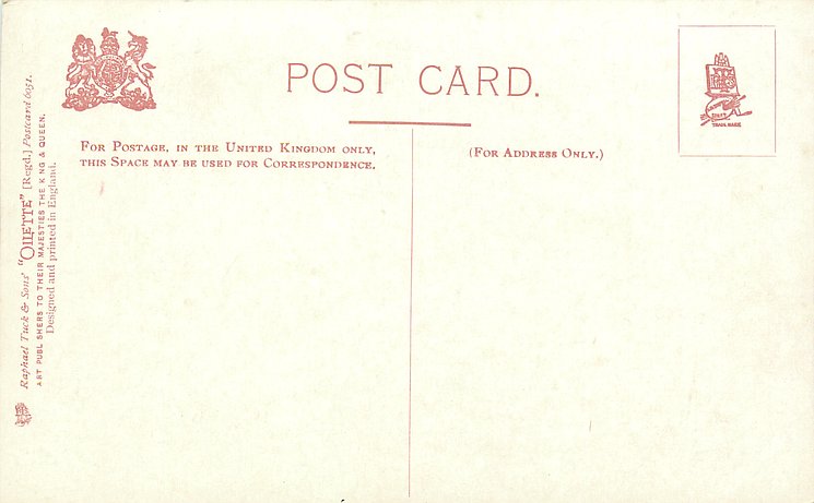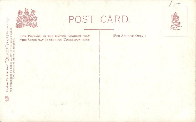 OILETTE, PRINTED IN ENGLAND, listed in 1904 & 1911/1912 Postcard Catalogues