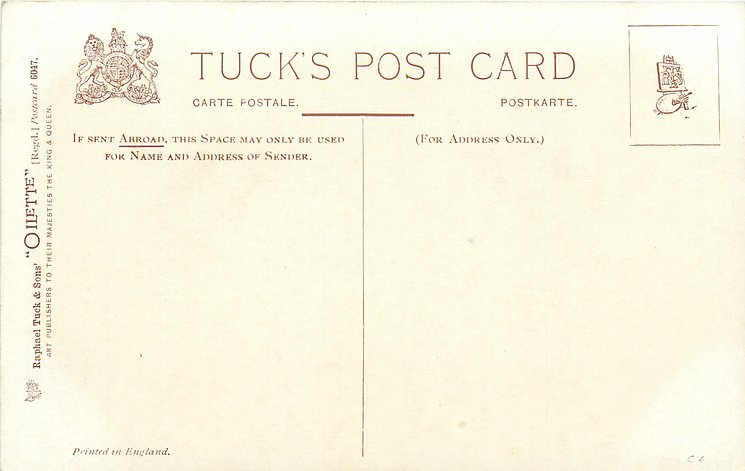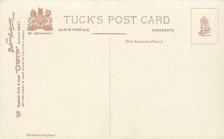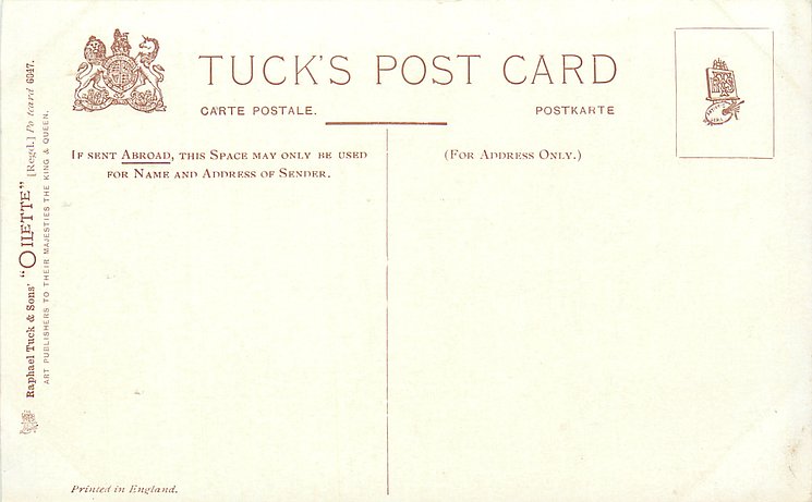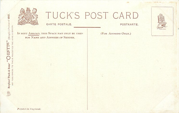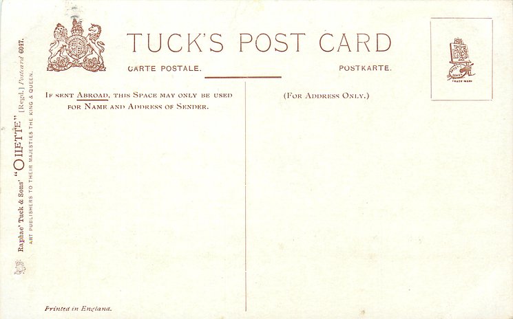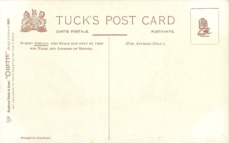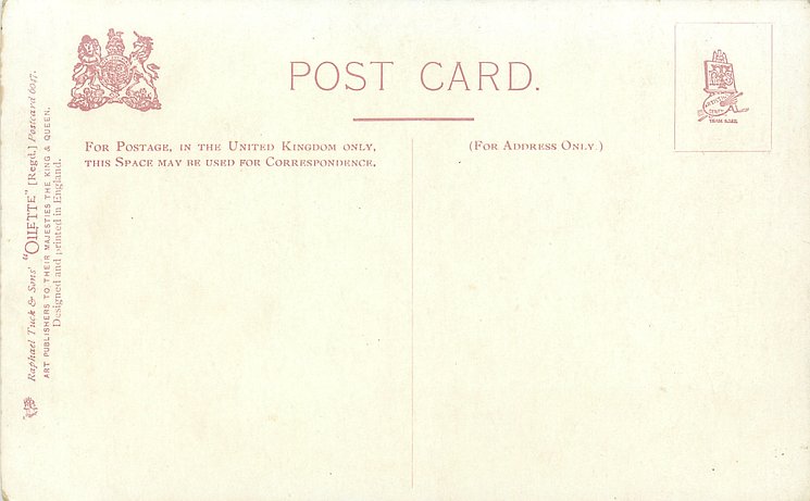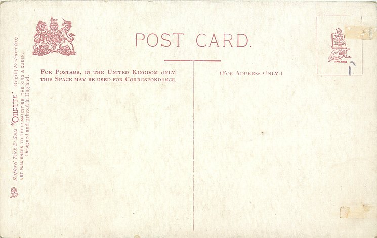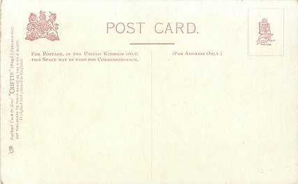 OILETTE or ART, come with or w/o PRINTED IN ENGLAND or DESIGNED AND PRINTED IN ENGLAND, 4 backs, listed in 1904 & 1908/1909 & 1911/1912 Postcard Catalogues