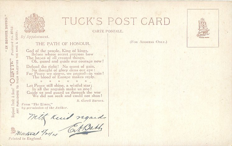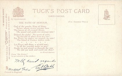 on back THE PATH OF HONOUR. GOD OF THE PEOPLE, KING OF KINGS//NOT SHUN! a poem by R. GORELL BARNES, come opt. in red CHRISTMAS GREETINGS