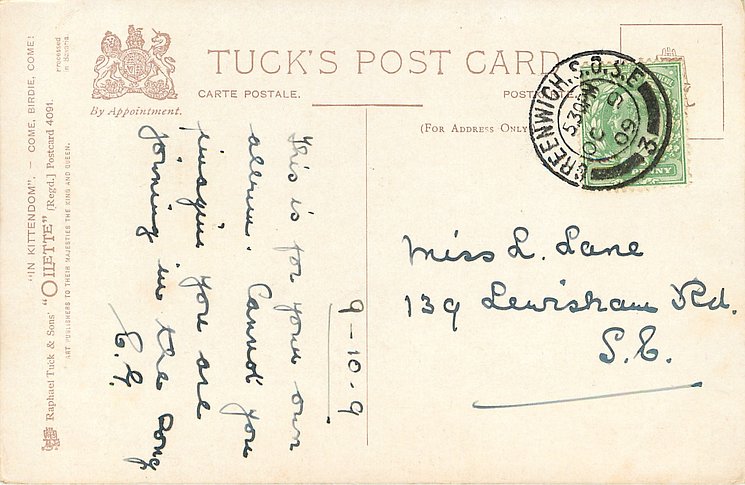 OILETTE, PRINTED IN ENGLAND, COPYRIGHT LONDON, 2 backs, come with & w/o various greetings & verses