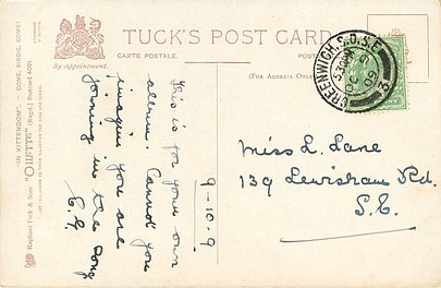 comes HEAPS OF LUCK & verse:- GOOD LUCK TO YOU, DEARIE, WARM WISHES I SEND//TO END, same image 2054, R 2054 R3603 & with Xmas greetings 7542