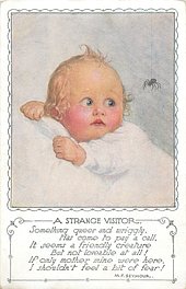 verse:- SOMETHING QUEER AND WRIGGLY, HAS COME TO PAY A CALL, IT SEEMS A FRIENDLY CREATURE BUT NOT LOVEABLE AT ALL! IF ONLY MOTHER MINE WERE HERE. I SHOULDN'T FEEL A BIT OF FEAR! quote M.F. SEYMOUR