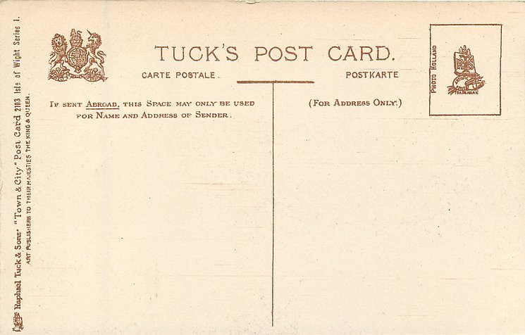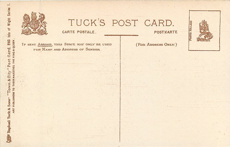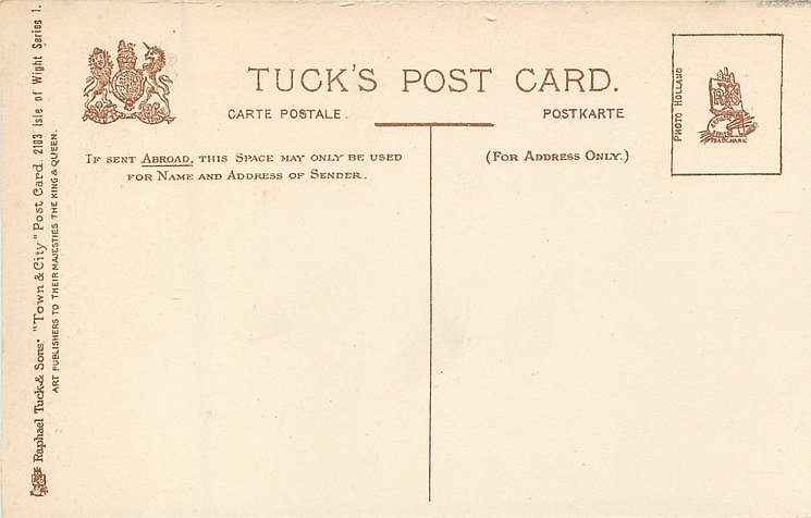 u/b, sepia or grey-black, COUNTY, PHOTOTYPED IN BERLIN, listed in 1904 POSTCARD Catalogue, some of same images not individually numbered SERIES 500 ISLE OF WIGHT, COUNTY