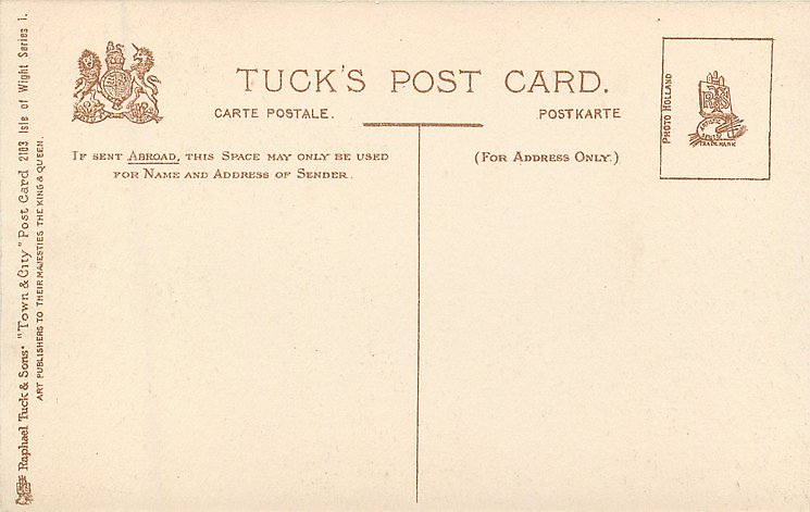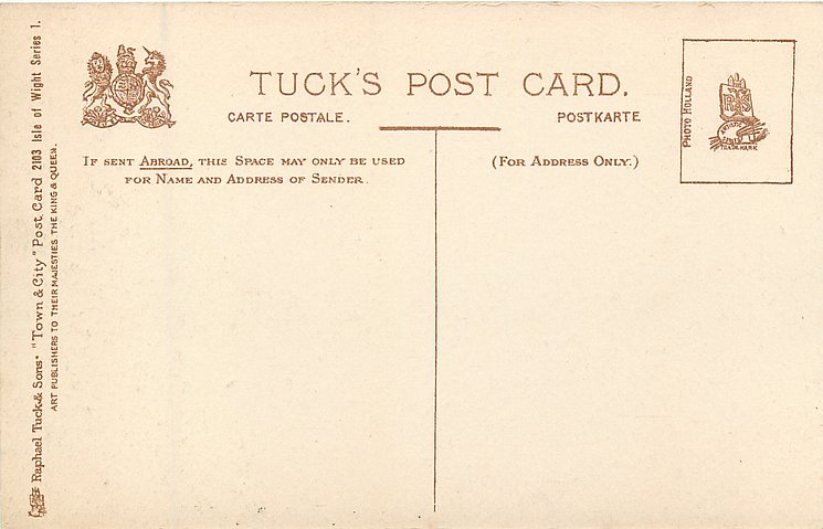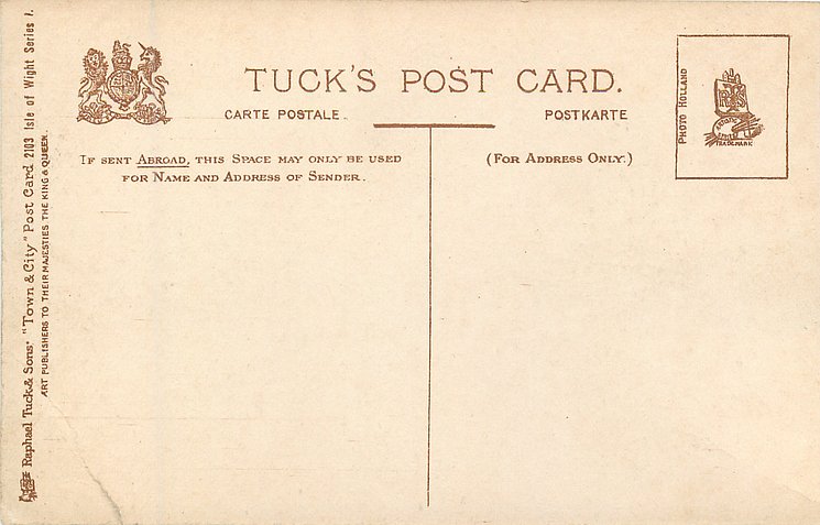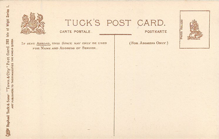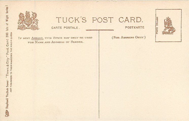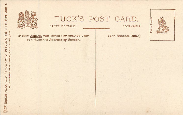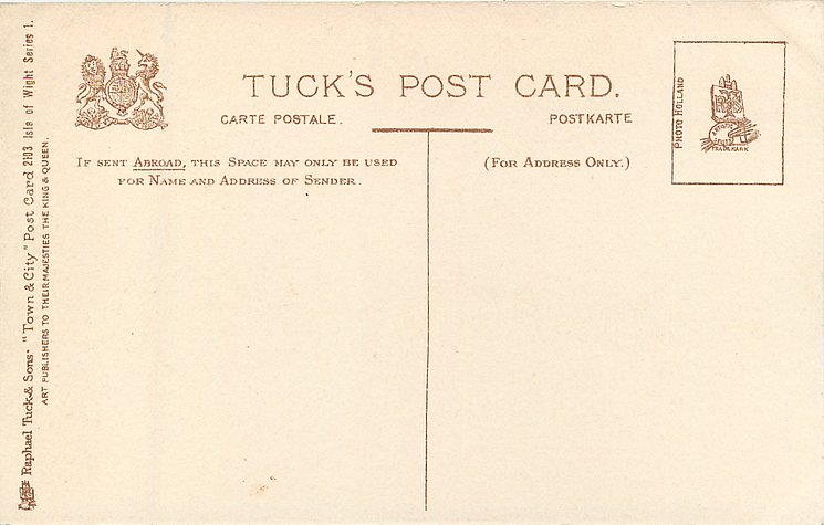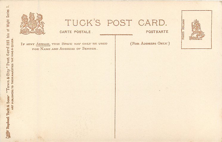 grey/black, TOWN & CITY, PHOTO HOLLAND (in stamp box), same images as ISLE OF WIGHT TOWN AND CITY SERIES 1, listed in RAPHAEL TUCK & SONS' LD. CHRISTMAS & NEW YEAR 1904/1905 catalogue