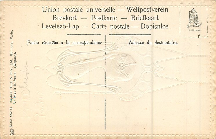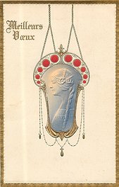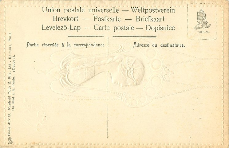 UN MOT A LA POSTE, (DEPOSE), International back, gilt embossed borders, opt. in red JOYEUX NOEL