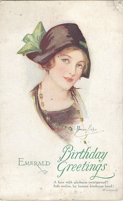 verse:- MORNING BLUSHES ON HER CHEEK AND PEARLS UPON HER BREAST., come opt. in gilt or black BIRTHDAY GREETINGS