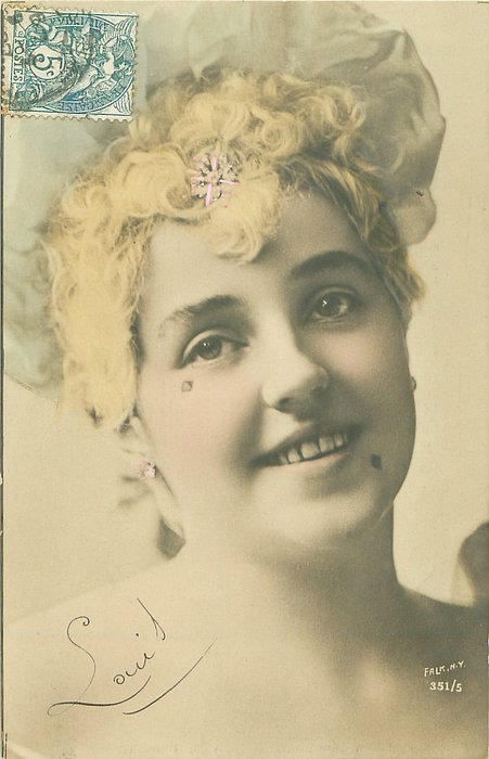 photographic coloured, UN MOT A LA POSTE, (DEPOSE) FALK, N.Y. 351/inset numbers (1-10) on front of card