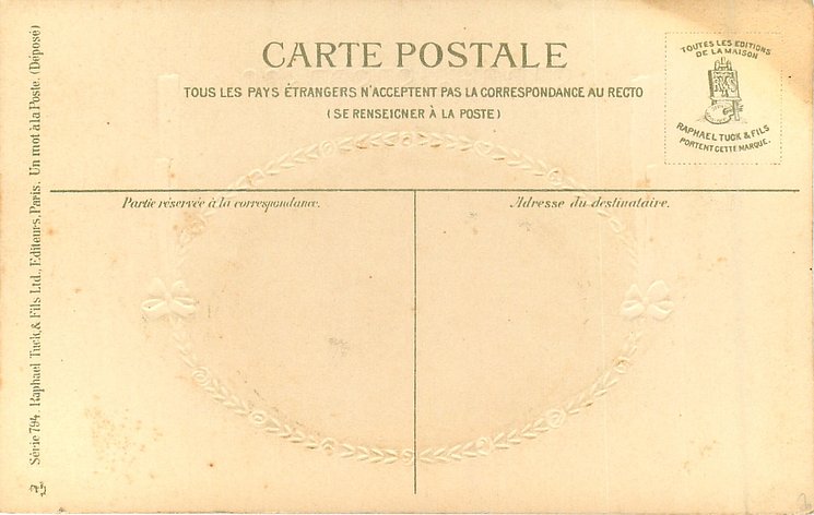 UN MOT A LA POSTE, (DEPOSE), embossed, gilt inscription & egg design