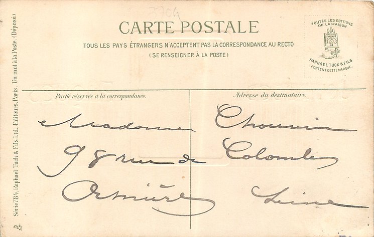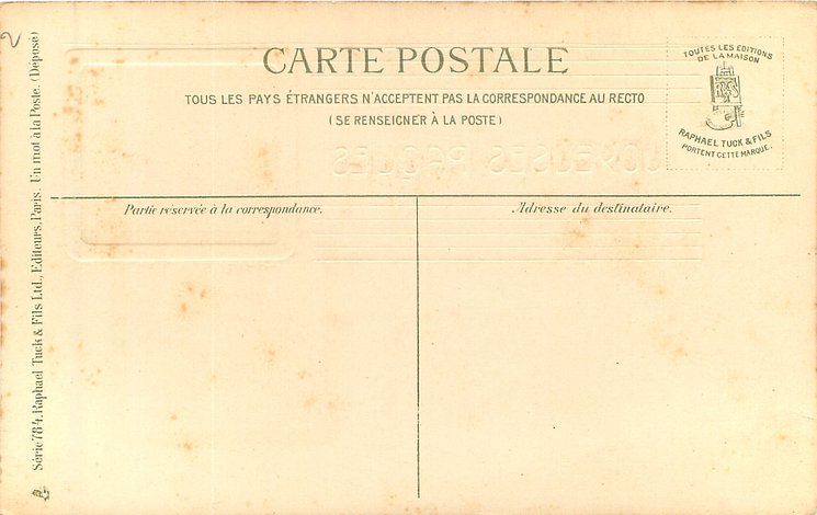 card comes with international back PAPIER RADIUM BROMIDE, comes hand coloured, Tuck logo front right