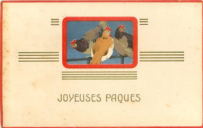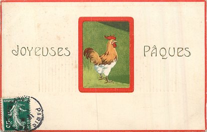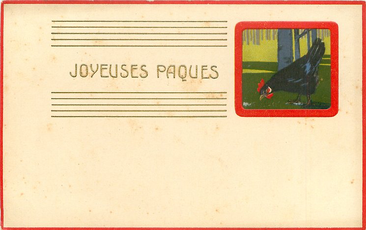 gilt embossed, UN MOT A LA POSTE, (DEPOSE) red card margins & red margined insets of poultry