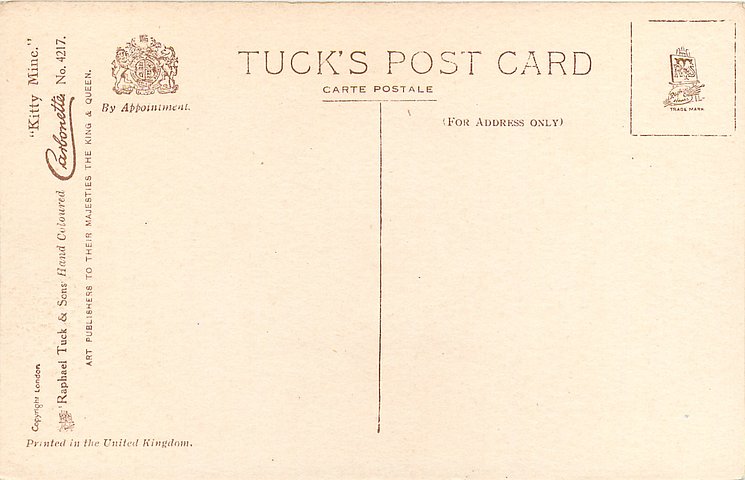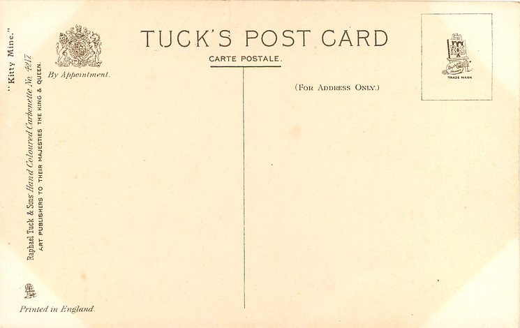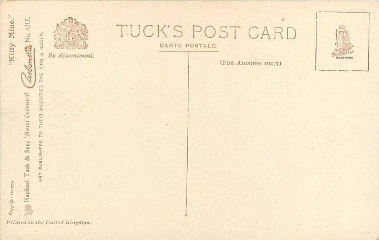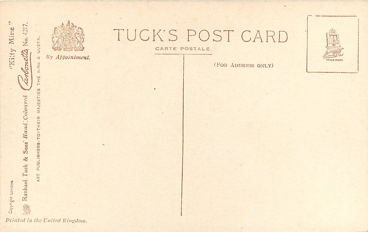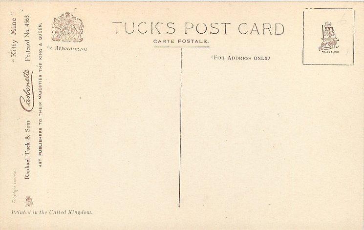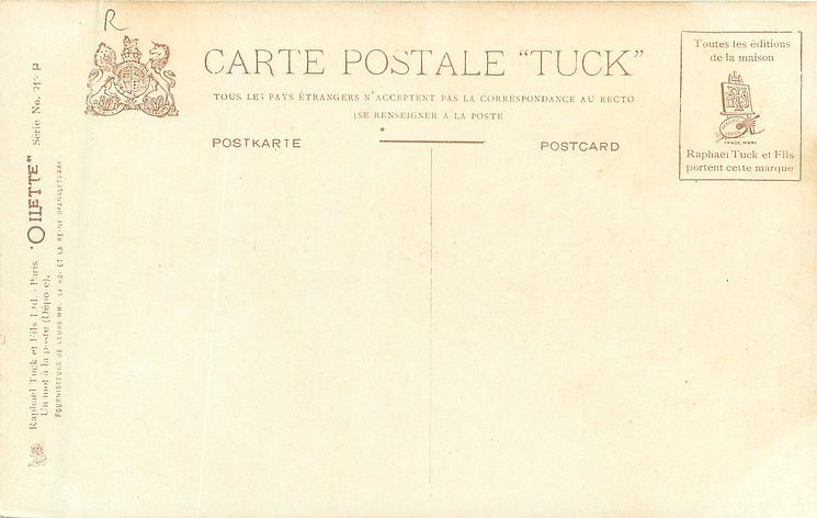 HAND COLOURED CARBONETTE, for same image not HAND COLOURED see 4563, PRINTED IN ENGLAND or PRINTED IN THE UNITED KINGDOM with or w/o COPYRIGHT LONDON