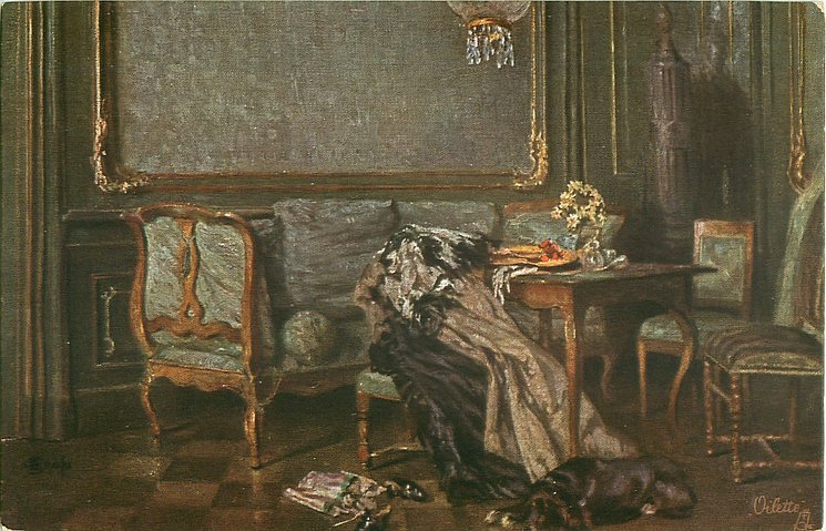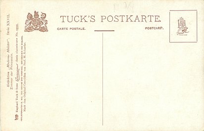 CONNOISSEUR with OILETTE (on front), 2 backs, same image, English back, A PASTEL SKETCH, SERIES III, OILETTE CONNOISSEUR 2867, come with gilt opt. BONNE ANNEE, come with advertising opt. "MAXIM" BERLIN, JAGERSTRASSE 63