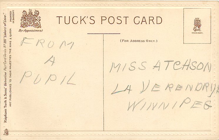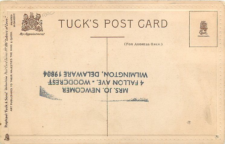 HANDCOLOURED CONNOISSEUR, PROCESSED IN SAXONY, printing on back in red with in set numbers, listed in 1911/1912 Postcard Catalogue