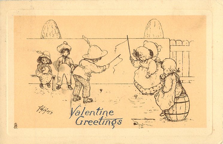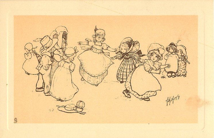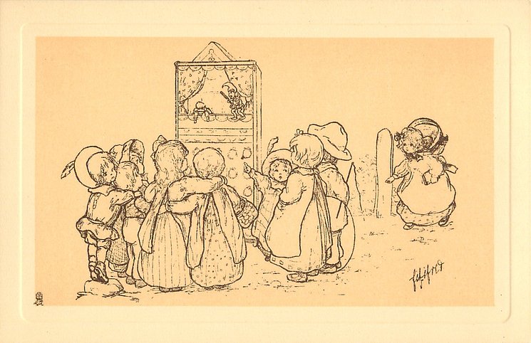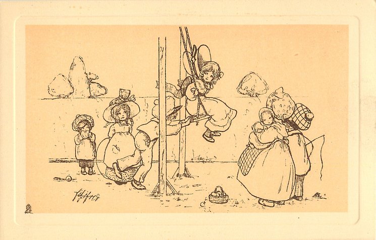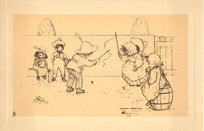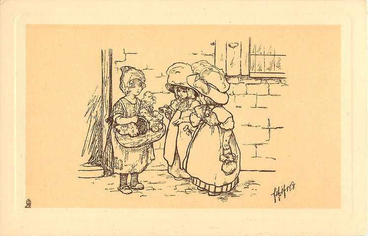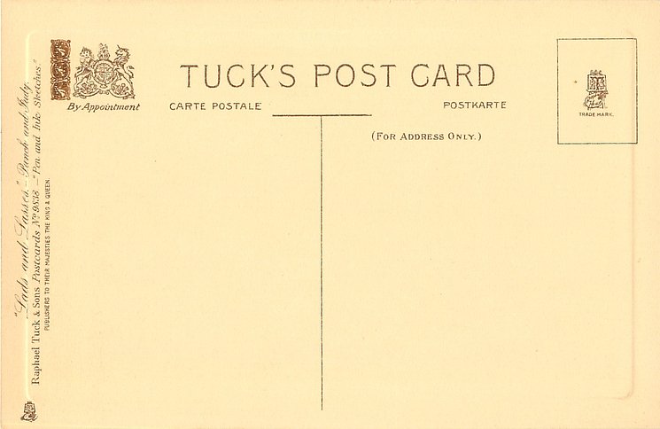 shades of grey/black, come hand-coloured, ART, 2 backs, PRODUCED IN AUSTRIA, listed in 1904 POSTCARD Catalogue