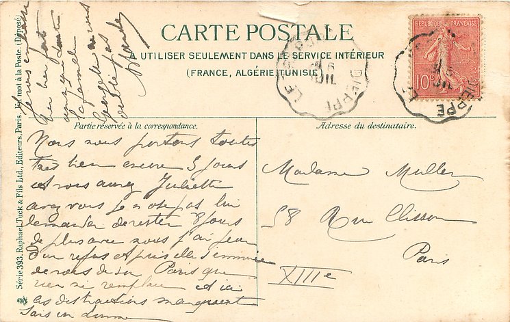 UN MOT A LA POSTE, (DEPOSE), gilt embossed art nouveau surrounds & ribbons