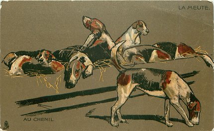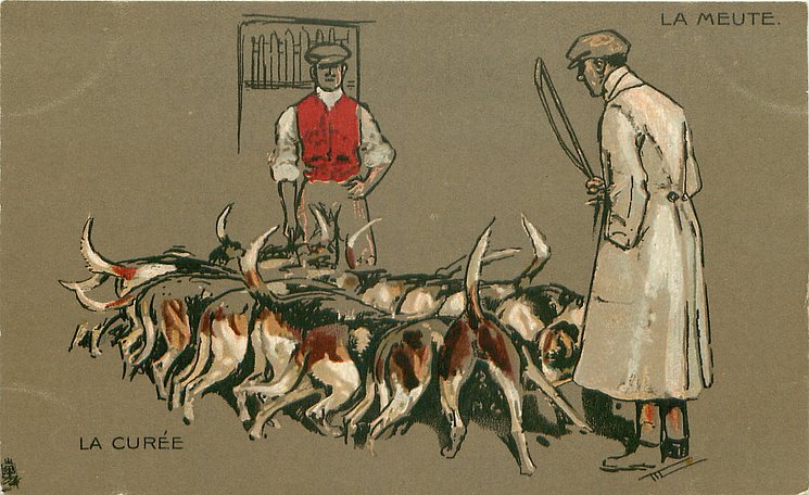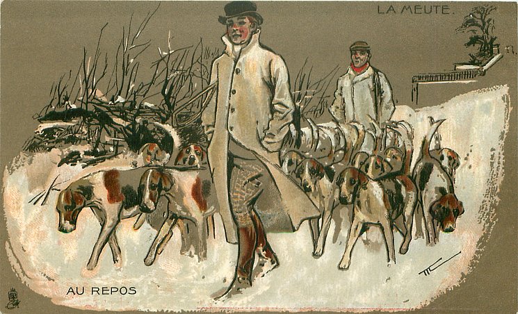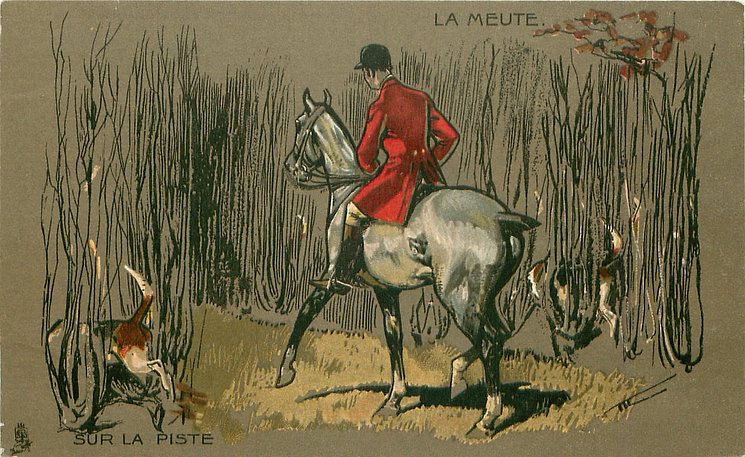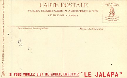UN MOT A LA POSTE (DEPOSE), same image English back 1303 IMPRESSIONIST TALLY HO!, 594 CALENDAR come opt. in red on back SI VOUS BIEN DETACHER, EMPLOYEZ "LE JALAPA"