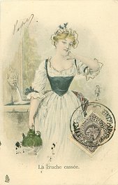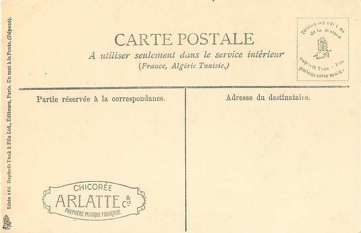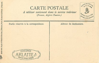 UN MOT A LA POSTE, (DEPOSE), come hand-coloured, comes with CHICOREE ARLATTE ad. on back