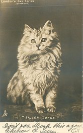 u/b or divided back, shades of grey, ART, 5 backs PHOTOTYPED IN AUSTRIA, come with CAT STUDIES BY CHARLES REID on back, same images REAL PHOTOGRAPH among 5087, 5088, 5089,5093, PHOTOCHROME 6495/6496 & 70O6/7007 SAPPHIRE CAT STUDIES, French backs in long sets SERIE 252 & SERIE 409, listed in 1904 POSTCARD Catalogue