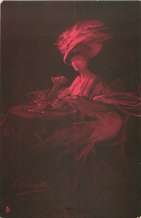 same image in grey/green on black background 534, various colours on black 540B, English back 2858 OILETTE CONNOISSEUR, A PASTEL SKETCH, SERIES I., NACH ORIGINALEN VON E. OCCHIPINTI, PARIS.