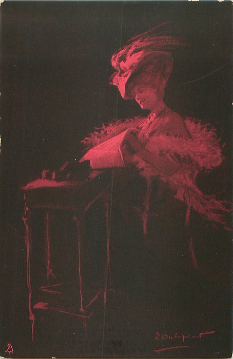 same image in grey/green on black background 534, various colours on black 540B, English back 2858 OILETTE CONNOISSEUR, A PASTEL SKETCH, SERIES I., NACH ORIGINALEN VON E. OCCHIPINTI, PARIS.