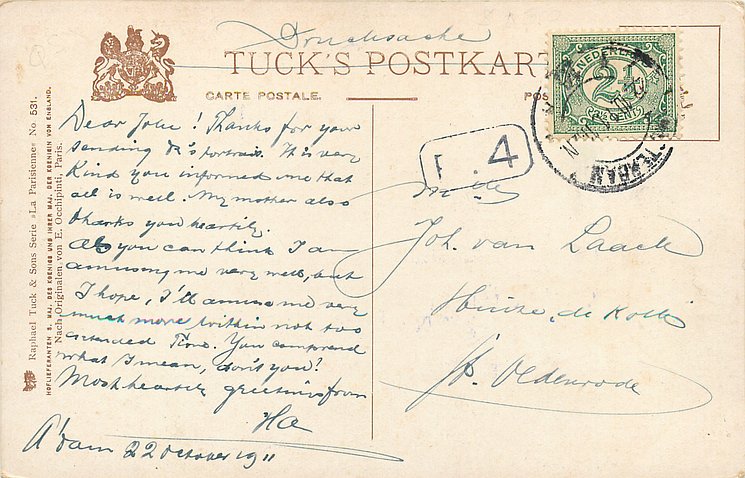 OILETTE or OILETTE CONNOISSEUR, suffix B, same image English back 2746, NACH DEM ORIGINAL.OELGEMALDE VON E. DE ROSEN, PARIS.