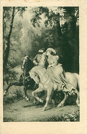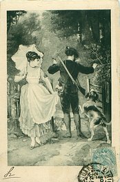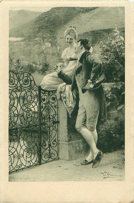 u/b, black & white, UN MOT A LA POSTE, (DEPOSE), same images 2551, Lovers in old-style dress, deckle edged