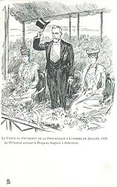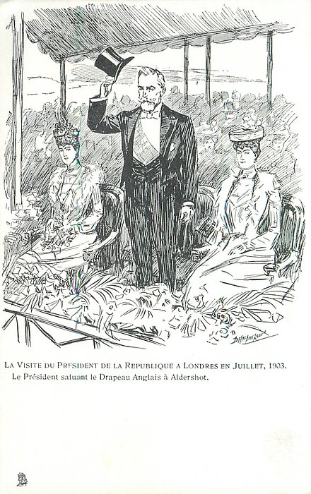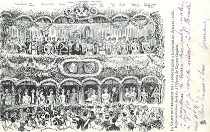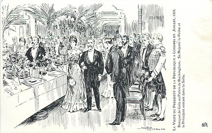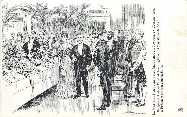 inscription cont'd: SA MAJESTE LA REINE ET LE PRESIDENT ENTRANT DANS LA SALLE