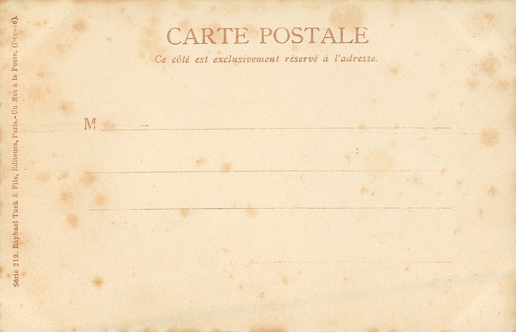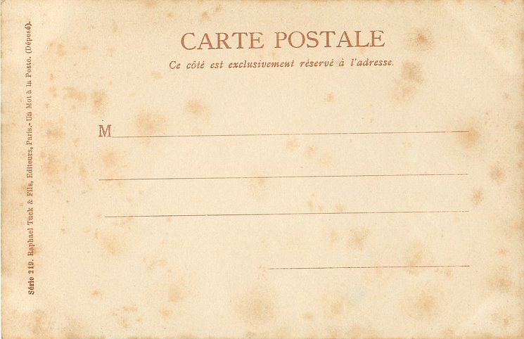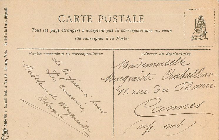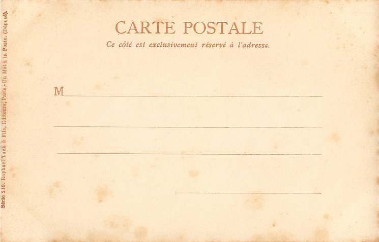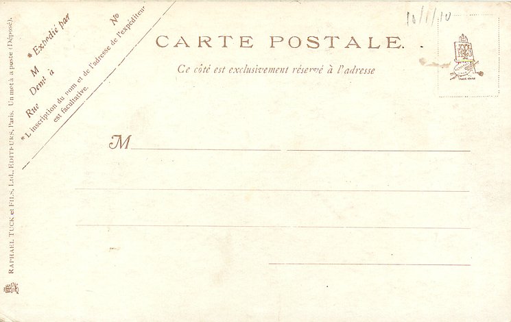 u/b, usually hand-coloured, UN MOT A LA POSTE, (DEPOSE), suffix C, come opt. in blue on back AUX GERBES D'OR - CHAUSSURES - EPERNAY, come with purple OFFERT PAR "LA PENSEE" VALENCIENNES advert. on front, enlarged portions of these images used for SERIE 311
