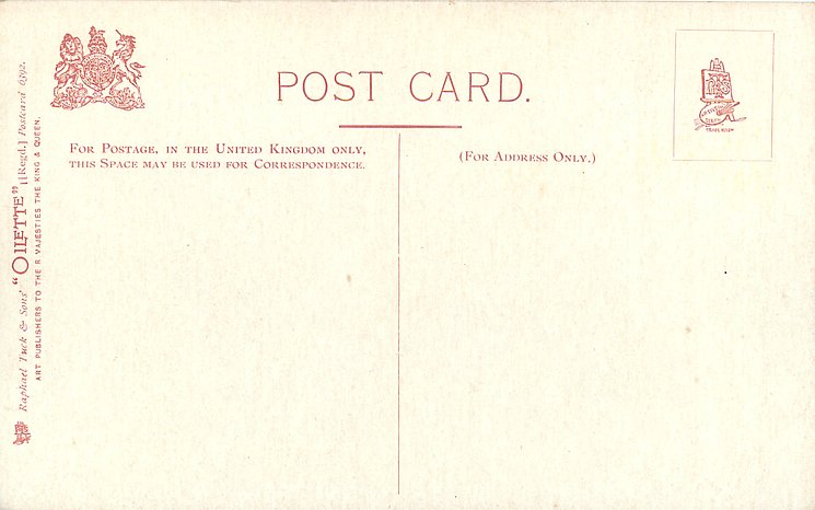 OILETTE, PRINTED IN ENGLAND, listed in 1904 & 1908/1909 & 1911/1912 Postcard Catalogues