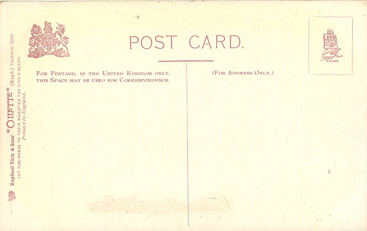 OILETTE, PRINTED IN ENGLAND, listed in 1904 & 1911/1912 Postcard Catalogues