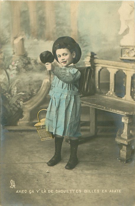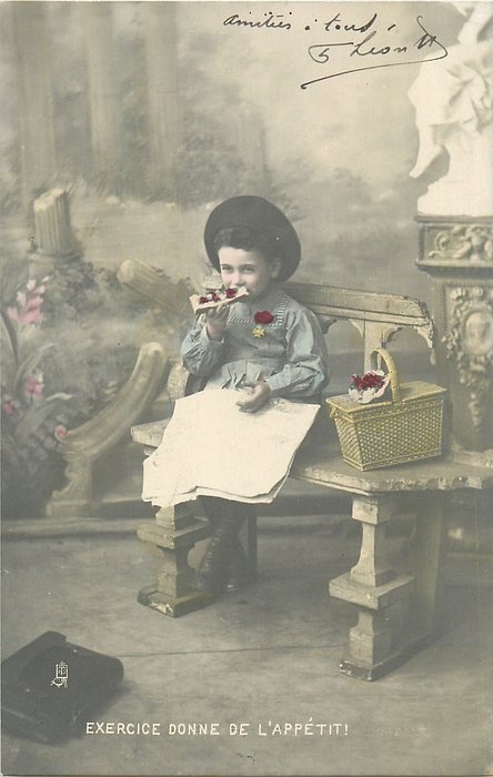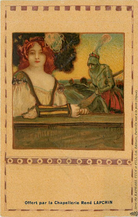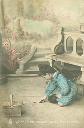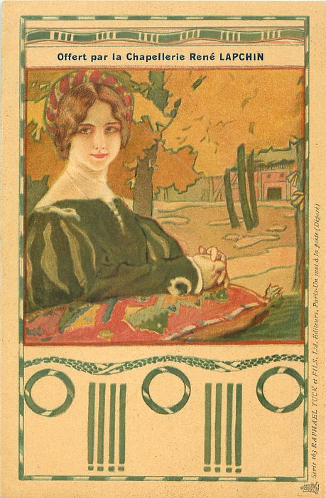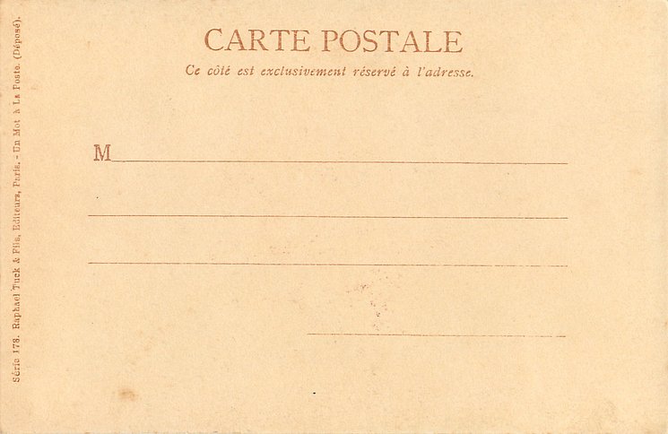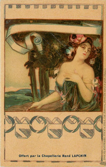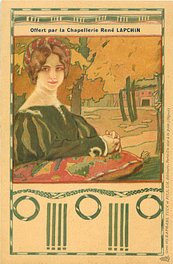 u/b, PARIS - UN MOT A LA POSTE (DEPOSE), attribution to Kempf very uncertain, this set does not have in set card numbers, come opt. in blue OFFERT PAR LA CHAPELLERIE RENE LAPCHIN, same images as French backed cards SERIE 166 which have in-set card numbers