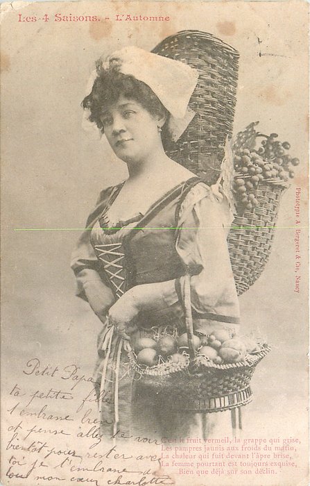 inscribed: C'EST LE FRUIT VERMEIL, LA GRAPPE QUI GRISE, LES PAMPRES JAUNIS AUX FROIDS DU MATIN, LA CHALEUR QUI FRUIT DEVANT L'APRE BRISE.... SON DECLIN.