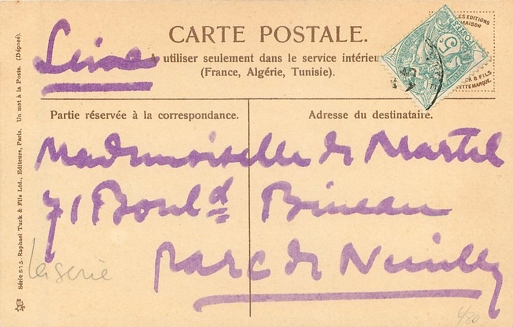 u/b, UN MOT A LA POSTE, (DEPOSE), comes with & w/o set title, come English back 2642 without title, in PROOF EDITION 37 (advertised.1902/1903), see Dell'Aquila E.7a & E.7b