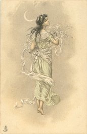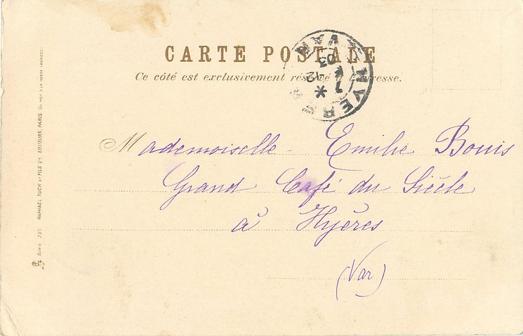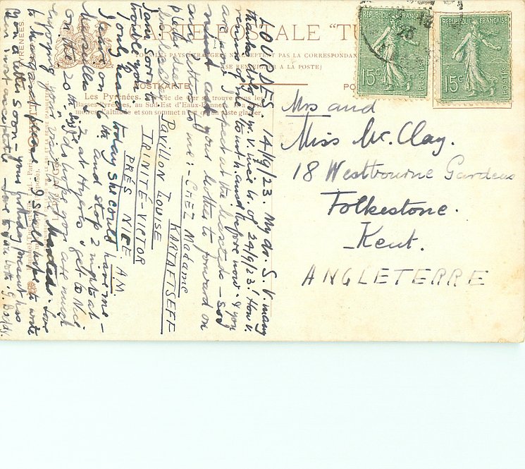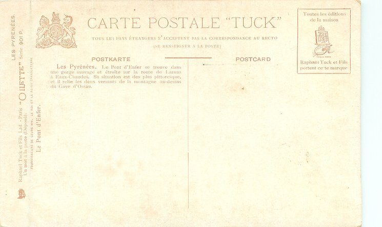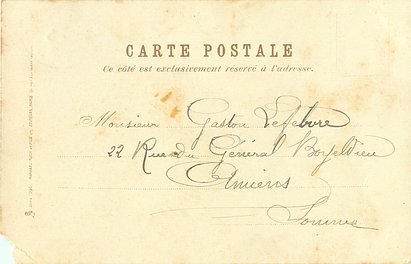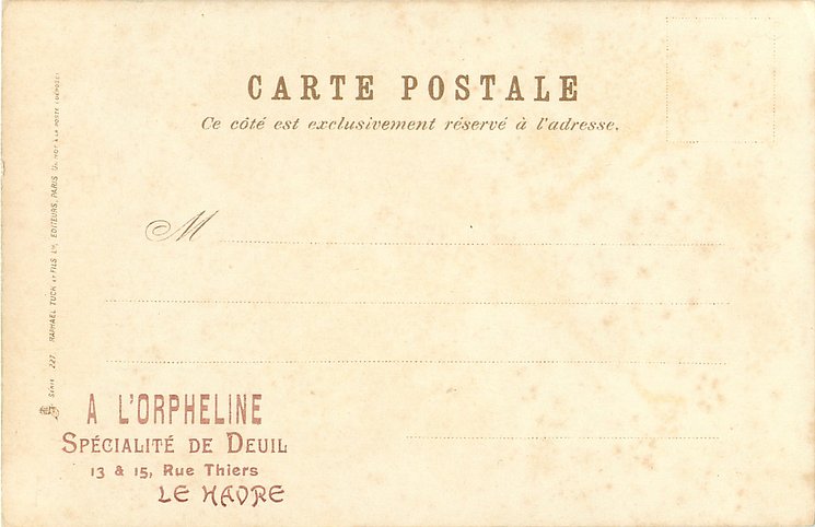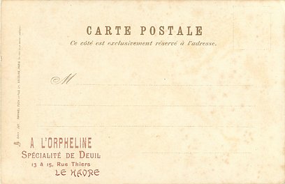 u/b, UN MOT A LA POSTE, (DEPOSE), come opt. in red on back A L'ORPHELINE, SPECIALITE DE DEUIL, 13 & 15 RUE HIERS, HAVRE, same images English backs ART 884