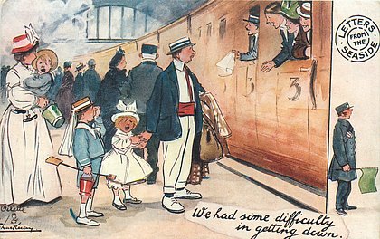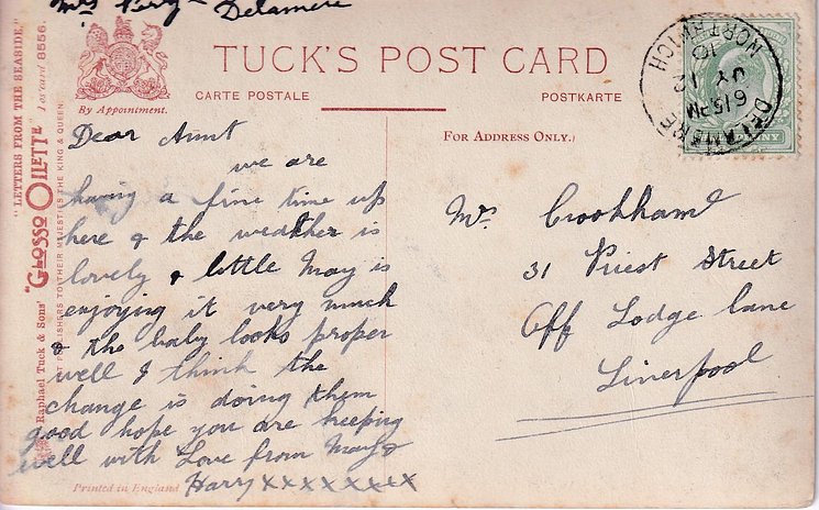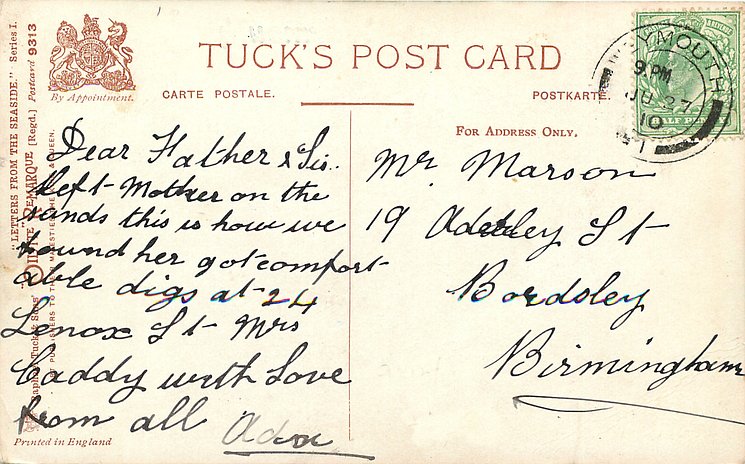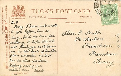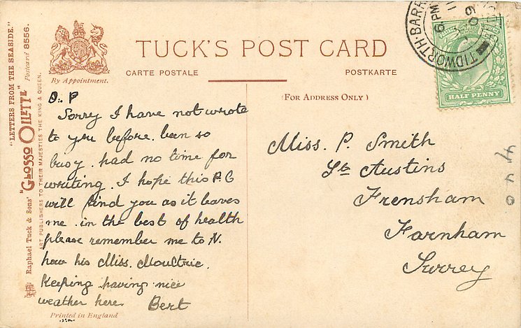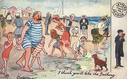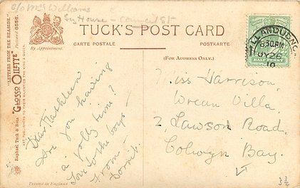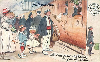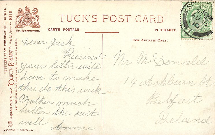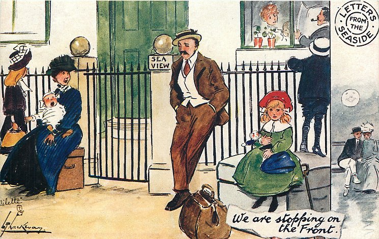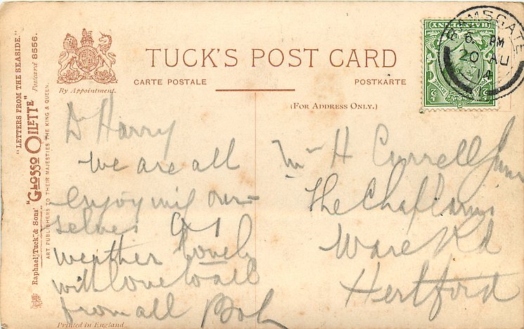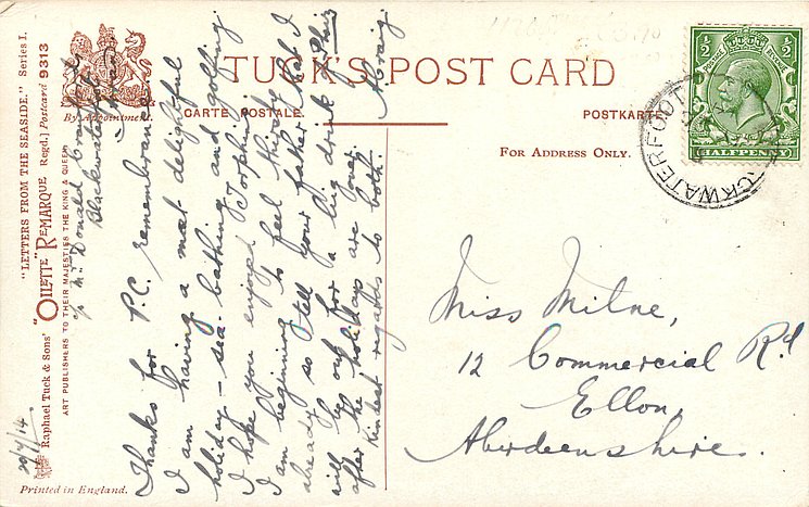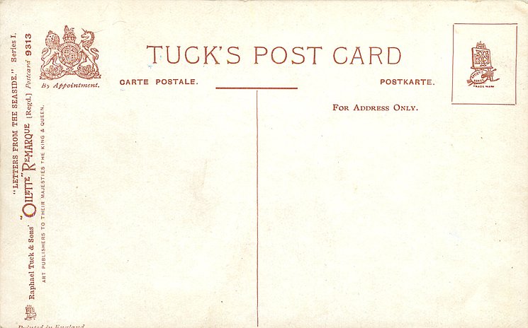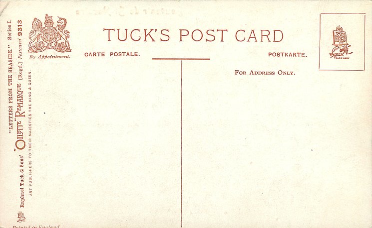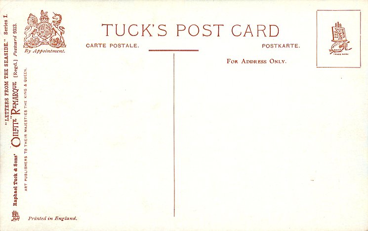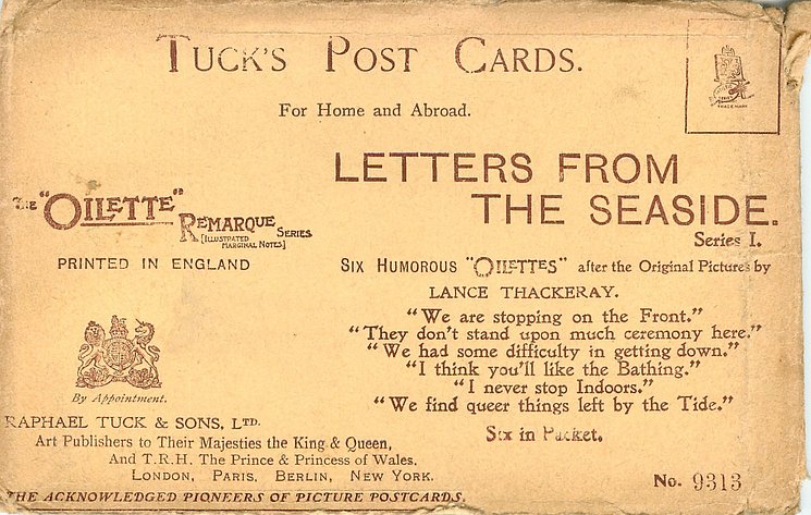 come opt. in blue AT BROADSTAIRS, in black A HAPPY NEW YEAR same image, series & card title 9314 OILETTE REMARQUE