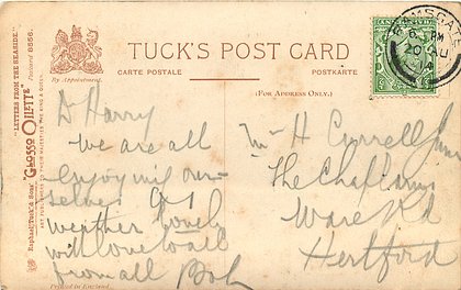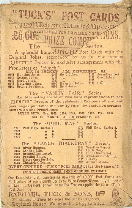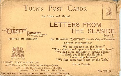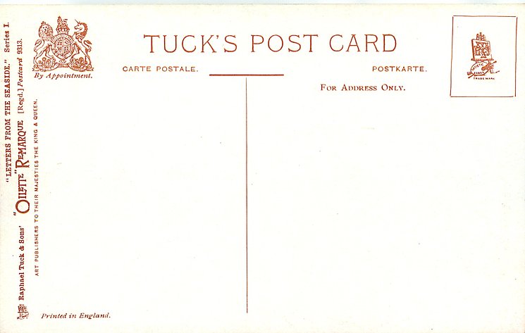 2 backs, OILETTE REMARQUE, PRINTED IN ENGLAND, listed in 1908/1909 & 1911/1912 Postcard Catalogue