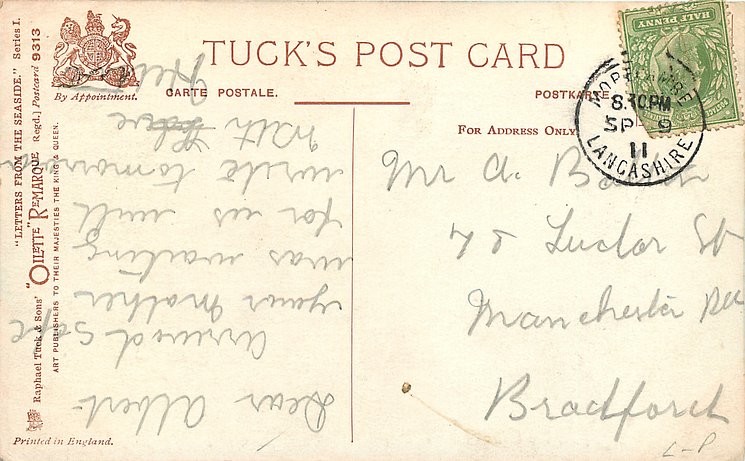 same image, series & card title 8556 OILETTE REMARQUE, comes opt. in blue MORECAMBE