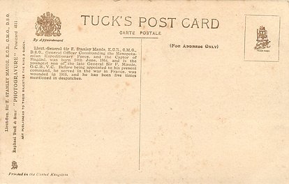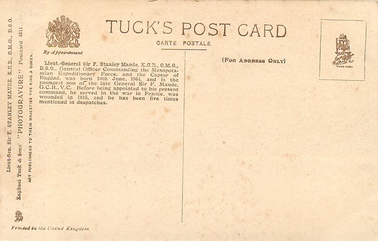 PHOTO MAULL & FOX, on back LIEUT. GENERAL SIR F. STANLEY MAUDE K.C.B., C.M.G., D.S.O., GENERAL OFFICER COMMANDING THE MESOPOTAMIAN// DESPATCHES