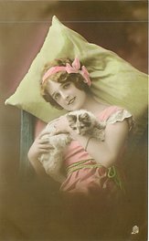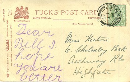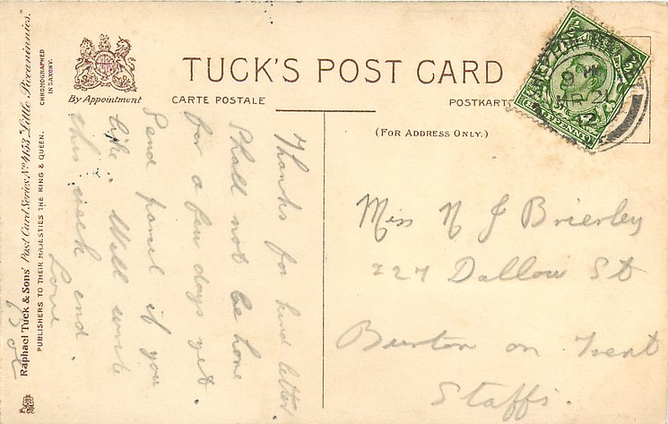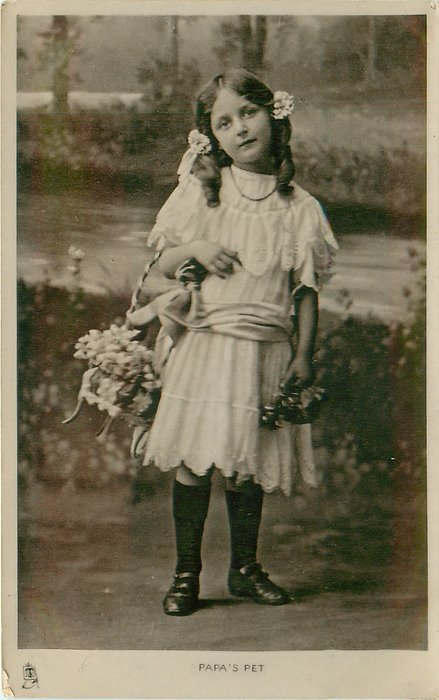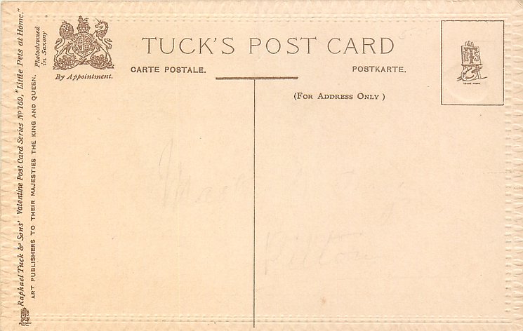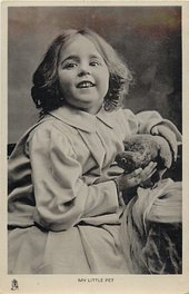 OILETTE, PRINTED IN ENGLAND, COPYRIGHT LONDON, come with greetings printed on back, come with verses, AFTER THE ORIGINAL PAINTING BY AGNES RICHARDSON, listed in 1930 POSTCARD Catalogue