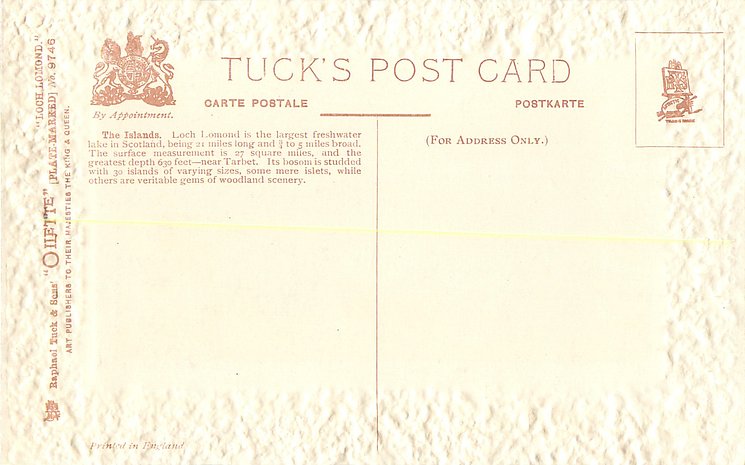 OILETTE, PLATE-MARKED, PRINTED IN ENGLAND, listed in 1908/1909 Catalogue