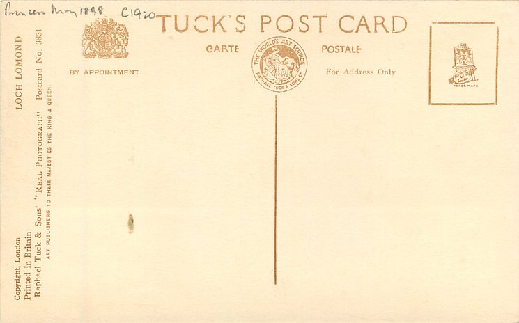 REAL PHOTOGRAPH, PRINTED IN ENGLAND, COPYRIGHT LONDON, 2 backs, listed in 1930 POSTCARD Catalogue