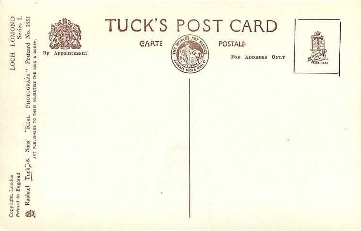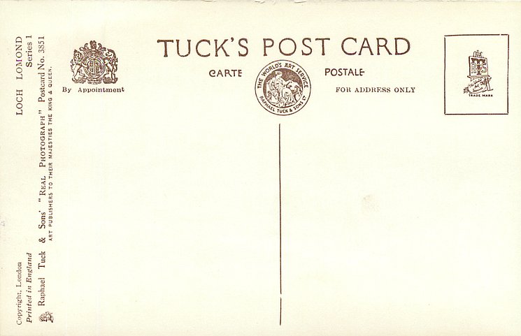 gilt, GREETINGS FROM LOCH LOMOND, WHITE HEATHER FOR LUCK, FRAMED GEM GLOSSO TARTAN, PROCESSED IN SAXONY (in stamp box), same images as set 1863